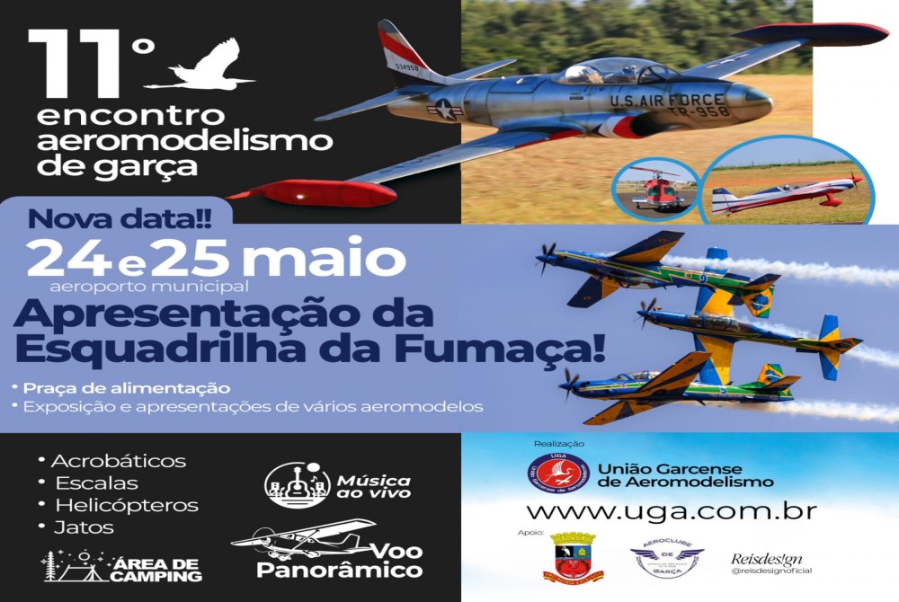 A cidade de Garça será o palco de um dos melhores encontros de Aeromodelismo de SP, 11 Encontro de Aeromodelismo de Garça no aeroporto municipal terá presença de vários aeromodelistas da região, exposições e apresentações de vários aeromodelos , Acrobáticos, Escalas, Helicópteros , Jatos e muito mais e contará com a presença da esquadrilha da fumaça. Com uma Área de camping sensacional , música ao vivo e muitas novidades lhes aguardam na UGA. Maiores informações , acesse: www,uga.com.br