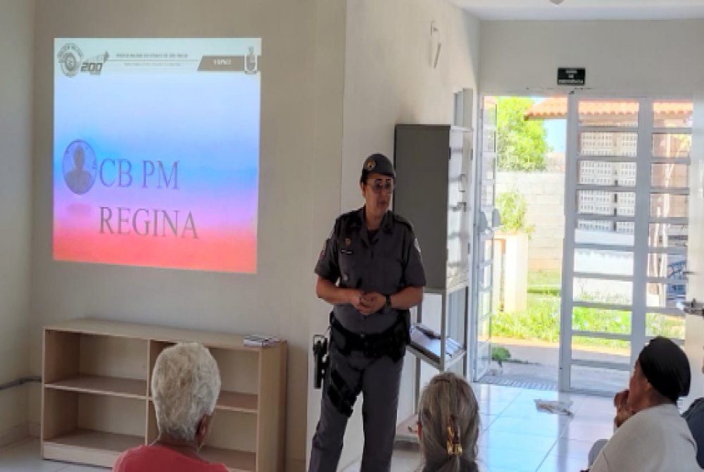 No dia 22, a Cabo PM Regina realizou, na cidade de Garça, uma palestra sobre “Direitos do Idoso”, voltada aos participantes do Programa Municipal Vida Longa.