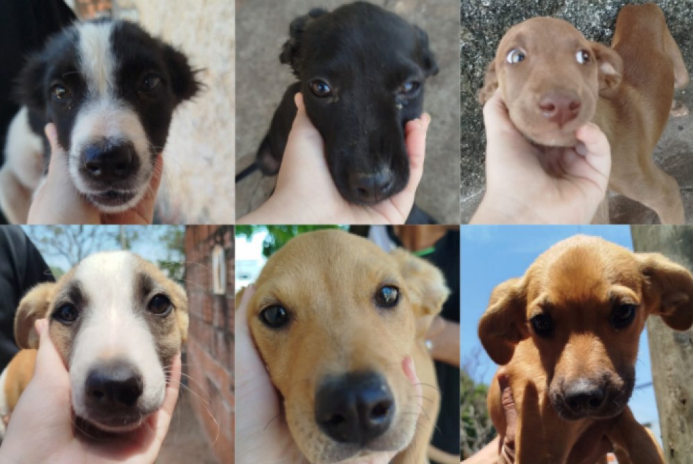 Os cãezinhos, todos dóceis e brincalhões, foram resgatados e agora aguardam adoção responsável. São animais jovens, com toda a energia e afeto que só os filhotes têm. Entre as opções, há um pretinho peludo, uma caramela simpática, um vira-lata caramelo, um filhote preto e branco de olhar doce e até uma pequena princesa de pelagem marrom e olhos claros; cada um com seu próprio encanto e pronto para conquistar um novo tutor.