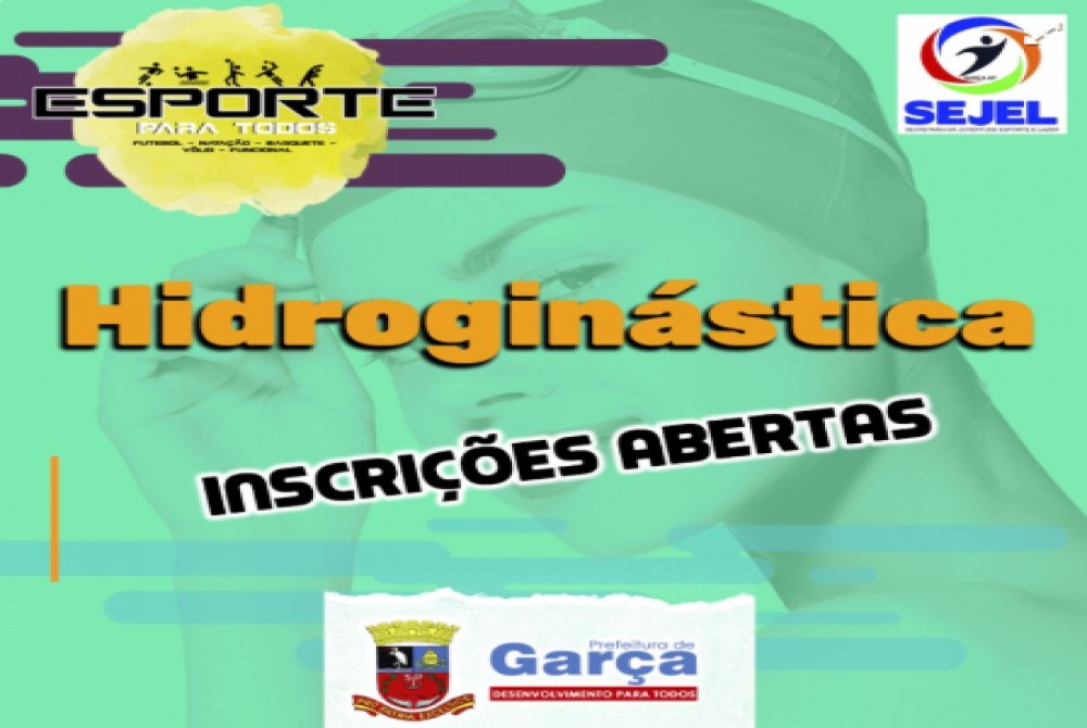 A Prefeitura Municipal de Garça, por meio de Secretaria de Juventude, Esportes e Lazer - SEJEL, está com vagas para as aulas de Hidroginástica com modalidades que englobam várias idades, para ambos os sexos. As aulas acontecem, na Piscina Municipal, ao lado do Centro Esportivo. A SEJEL traz novos horários no período da tarde com a Profª Ana Carolina.