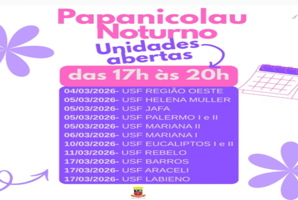 Vale destacar que todos os meses existe essa programação especial, sempre com horários estendidos, para garantir que mais mulheres tenham acesso ao exame preventivo e possam cuidar da sua saúde de forma prática e segura. O papanicolau é um exame fundamental porque previne e auxilia na detecção precoce do câncer do colo do útero, além de identificar alterações celulares que podem evoluir para doenças mais graves. Com isso, é possível iniciar o tratamento de forma rápida e eficaz, garantindo mais saúde e qualidade de vida.
