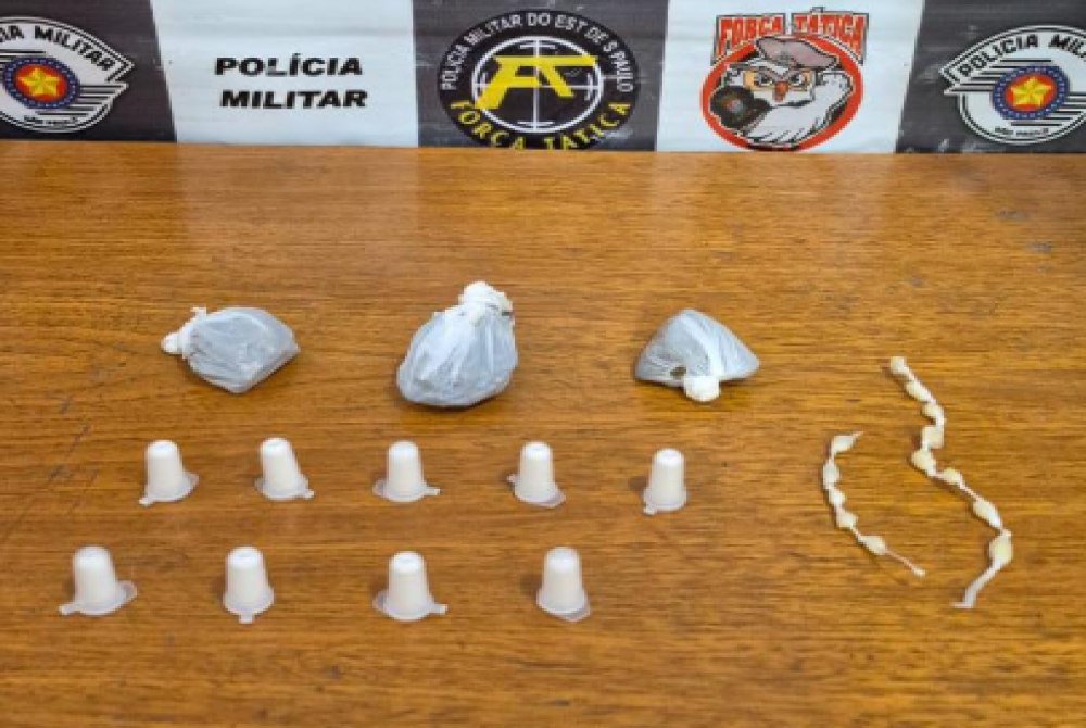 ?O jovem, que já era conhecido pelas autoridades, demonstrou nervosismo e tentou se afastar ao notar a presença dos policiais. Durante a revista, a equipe encontrou em sua posse 13 pedras de crack, 9 microtubos de cocaína e 3 porções de maconha.
