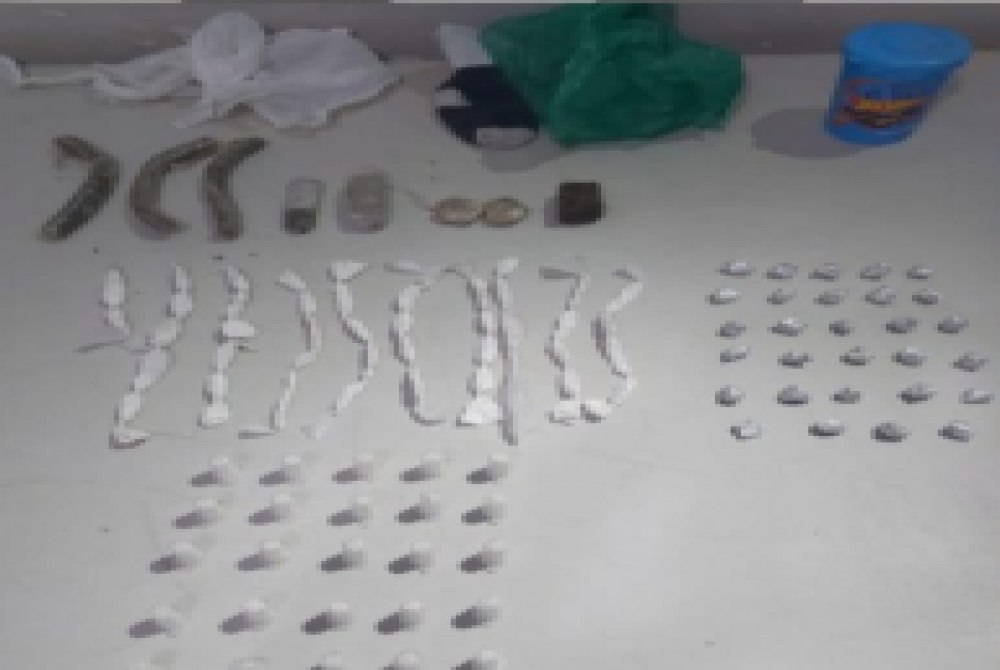 Na busca pessoal, os policiais localizaram 15 eppendorfs de cocaína escondidos na roupa do suspeito. Em seguida, a equipe retornou ao bar, onde encontrou uma sacola contendo mais 15 eppendorfs de cocaína e 8 porções de maconha.