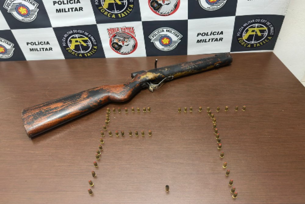 Na noite de quinta-feira (01), por volta das 20h30, equipes da Força Tática do 9º Batalhão de Polícia Militar do Interior apreenderam uma arma de fogo no bairro Jamil Dualib, em Tupã. Durante a diligência, os policiais localizaram uma espingarda calibre .22, de fabricação artesanal, escondida sob um sofá. Junto ao armamento, foram encontradas 52 munições intactas e uma deflagrada. Questionado, o indivíduo afirmou que possuía a arma para autodefesa. Diante da materialidade, foi dada voz de prisão ao indivíduo, que foi conduzido à Central de Polícia Judiciária. O delegado de plantão ratificou a apreensão dos objetos para perícia e, após os procedimentos legais, o homem foi ouvido e liberado para responder ao processo em liberdade.