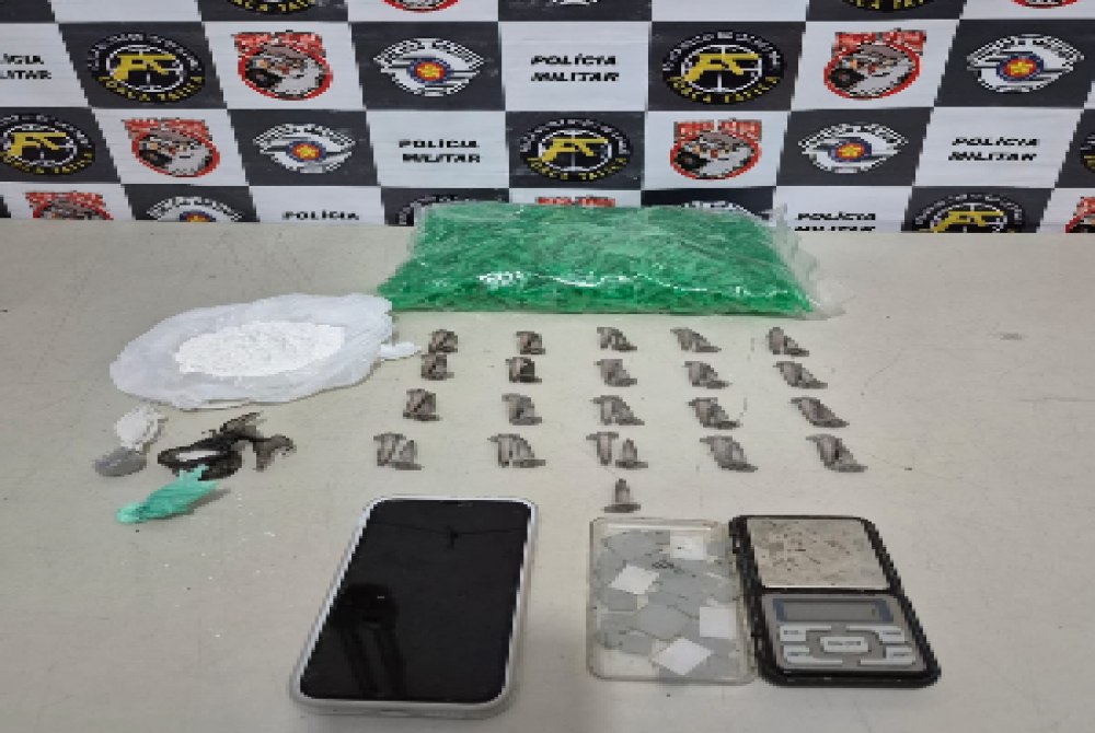Na noite de ontem, 24 de fevereiro de 2026, durante patrulhamento preventivo e ostensivo pelo município de Garça, equipe de Força Tática recebeu informação de que um indivíduo estaria praticando tráfico de drogas nas proximidades de um estabelecimento comercial no bairro Jardim Frei Aurélio. Diante da denúncia, foi realizada a abordagem e busca pessoal foi localizado com o suspeito 10 microtubos contendo substância esbranquiçada análoga à cocaína, uma porção de maconha e um aparelho celular. Indagado, o abordado admitiu informalmente a prática do tráfico de drogas e informou que mantinha maior quantidade de entorpecente em sua residência. Com autorização de sua responsável legal, os policiais realizaram buscas no imóvel, onde localizaram, no interior de um guarda-roupas, uma bolsa contendo porções de substância análoga à cocaína, 31 microtubos com a mesma droga, duas porções adicionais do entorpecente, uma balança de precisão e materiais utilizados para o fracionamento e embalagem. Diante dos fatos e da materialidade delitiva, foi dada voz de prisão em flagrante pelo crime de tráfico de drogas (artigo 33 da Lei 11.343/2006). O indivíduo foi conduzido à Central de Polícia Judiciária de Marília, onde a autoridade policial ratificou a prisão, permanecendo o indiciado à disposição da Justiça.