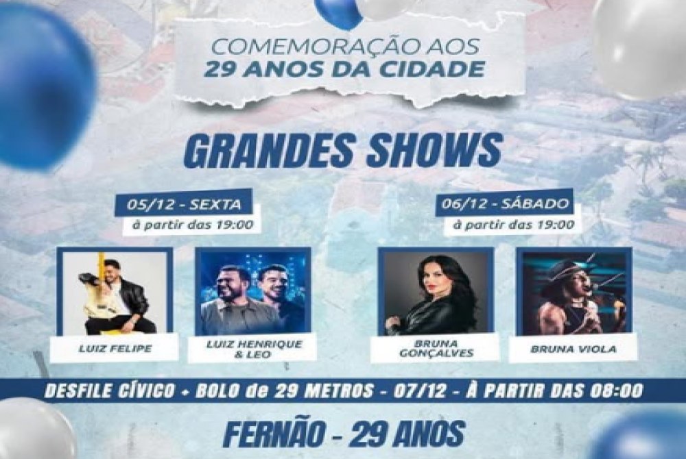 O município de Fernão, no interior de São Paulo, se prepara para um dos eventos mais aguardados do ano: a comemoração de seus 29 anos de emancipação. A festa, que já é tradição na cidade, terá três dias repletos de música, cultura e homenagens, entre os dias 5 e 7. A programação inclui grandes shows, praça de alimentação, apresentações culturais e o tradicional desfile cívico.