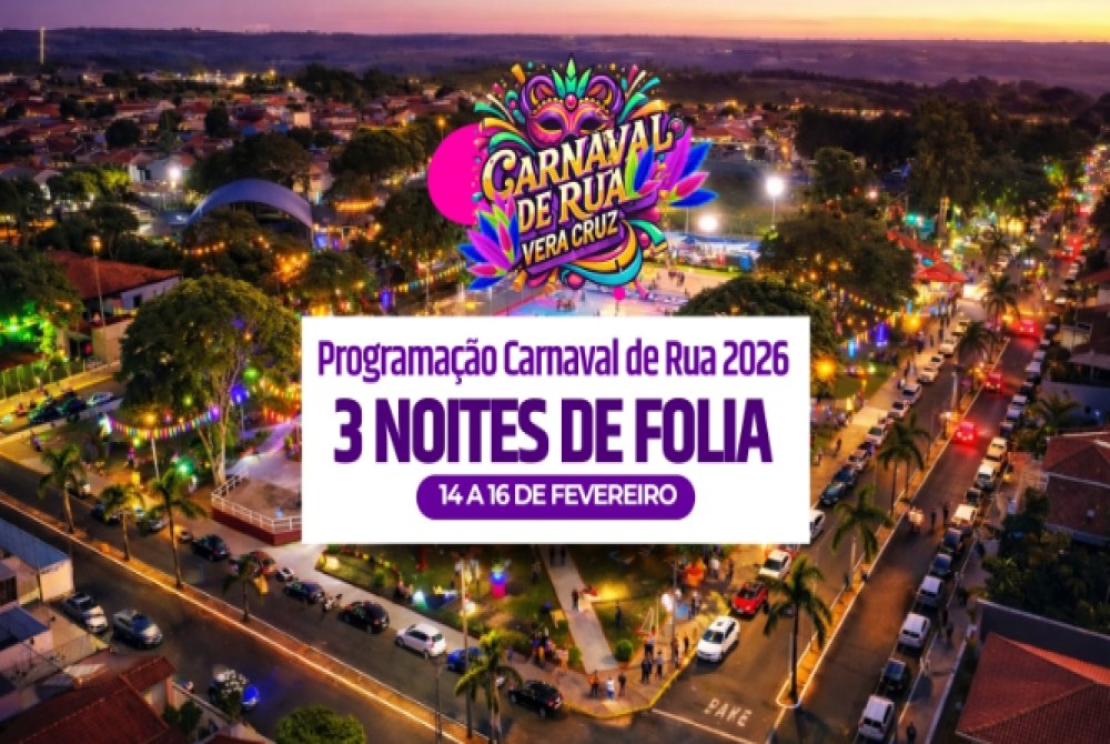 Vera Cruz se prepara para viver três noites de muita música, alegria e celebração com o Carnaval de Rua 2026, que acontece de 14 a 16 de fevereiro, na Praça Monteiro Lobato. Com uma programação diversificada e atrações para todos os públicos, o evento reforça a tradição do carnaval popular e consolida a cidade como palco de grandes encontros culturais. A abertura oficial será no sábado, dia 14, a partir das 20h30, com show de Boi Gomes. Às 23h, a banda Kymania sobe ao palco para embalar o público e dar o tom da festa, marcando o início da folia com muita animação. No domingo, dia 15, a programação começa às 20h com a apresentação da escola de samba Grêmio Recreativo -Nova Marília (Grenom), levando ritmo, cores e emoção para o centro da cidade. Às 22h, o público segue em clima de festa com o show da Baladeira, garantindo uma noite de dança e descontração. O grande encerramento acontece na segunda-feira, dia 16, a partir das 21h, com Alex e Leandro apresentando o projeto Som de Boteco, que promete transformar a praça em um grande ponto de encontro da música popular. A noite contará com participação especial da dupla Heitor & Henrique e dos cantores Matheus Silva e Robson Carvalho, além dos tradicionais bloquinhos. Durante o evento, será realizado o lançamento oficial do 5º Vera Cruz Rodeio Festival, com a abertura ao vivo das vendas dos camarotes, prometendo um momento de grande emoção para o público presente. Com estrutura preparada para receber moradores e visitantes, o Carnaval de Rua 2026 de Vera Cruz une tradição, entretenimento e valorização dos artistas, contando ainda com uma praça de alimentação completa, oferecendo diversas opções gastronômicas para o público, e convidando todos a viver intensamente cada momento da maior festa do ano.